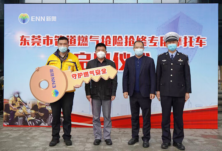 12月16日,東莞市管道燃氣搶險搶修專用摩托車啟用儀式在東莞新奧舉行。東莞市城市管理和綜合執法局三級調研員張立,市公安局交警支隊車管所副所長黎志鋒出席現場。他們共同將一把象征著“保障城市燃氣安全運營”的“安全金鑰匙”交付到新奧小黃人代表手中,標志著本次增配的150輛市管道燃氣搶險搶修專用摩托車正式啟用。