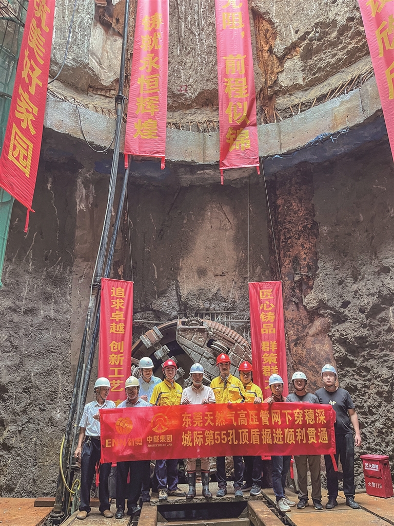此外,需要挑戰(zhàn)的還有建設(shè)過程中的諸多“攔路虎”“硬骨頭”。這其中,又以下穿穗深城際段為甚。該段全長938米,深度位于水面以下20米,同時穿越穗深鐵路及寮廈水道,施工難度大,技術(shù)難點多。為高效專業(yè)推進(jìn)項目施工,東莞新奧歷經(jīng)四次嚴(yán)格論證,創(chuàng)新采用國內(nèi)罕見的地連墻做豎井、頂盾做隧道的盾構(gòu)工法,在兩年時間內(nèi)推動項目實現(xiàn)全線貫通。700多個日夜里,建設(shè)者們堅持“安全第一”的原則,各司其職、協(xié)同作戰(zhàn),經(jīng)常是一身汗、滿腳泥。“一想到大家都在為了一個目標(biāo)向前沖,奮力拼,就感覺這點苦和累都不算什么了。”談起項目順利完工,盾構(gòu)項目負(fù)責(zé)人朱明鑫開心地說道。