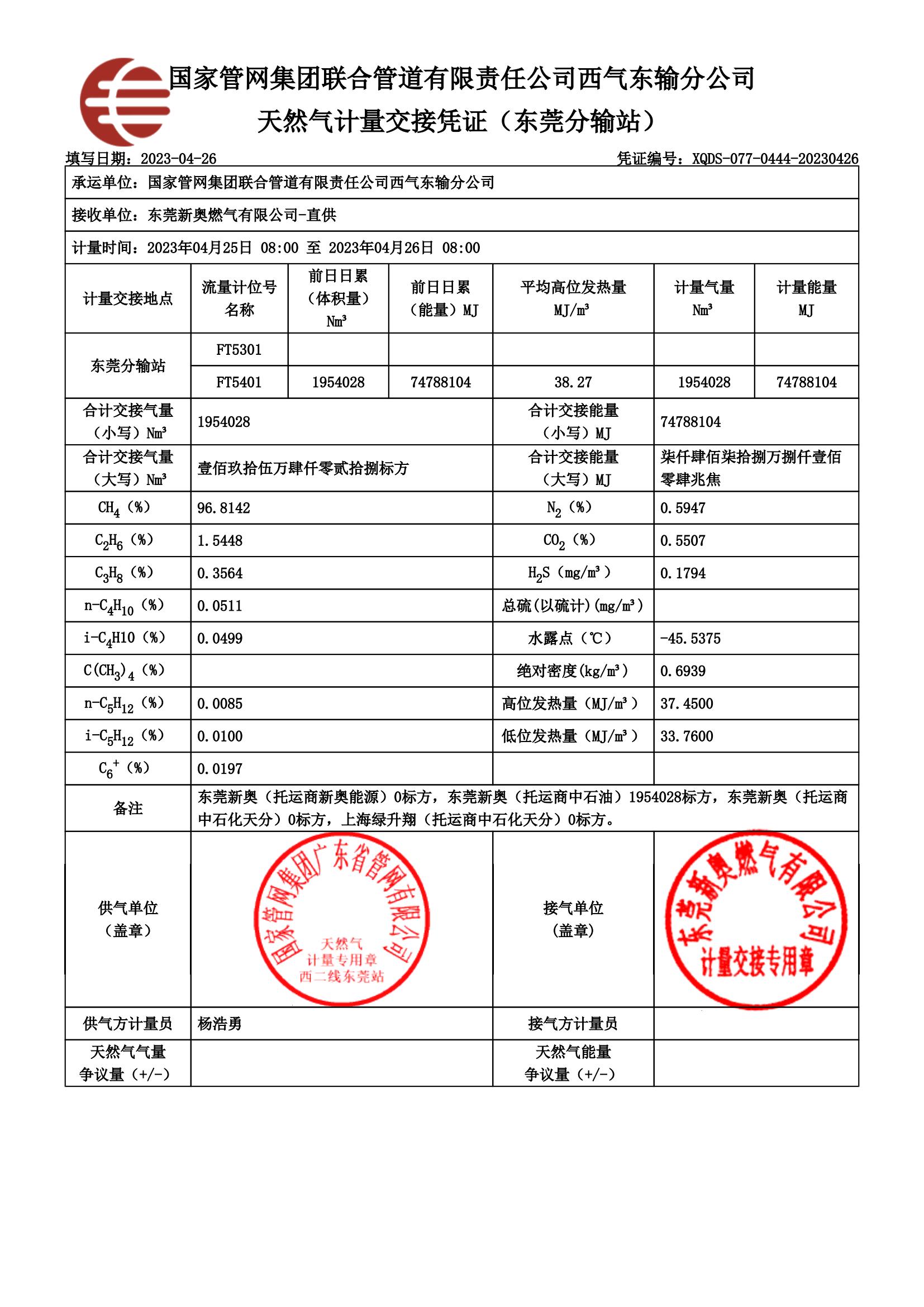 東莞新奧燃氣2023年4月份供氣質量檢查報告公示