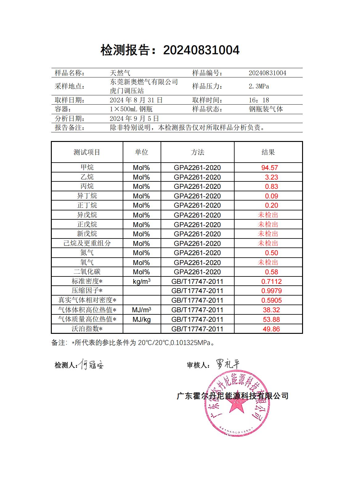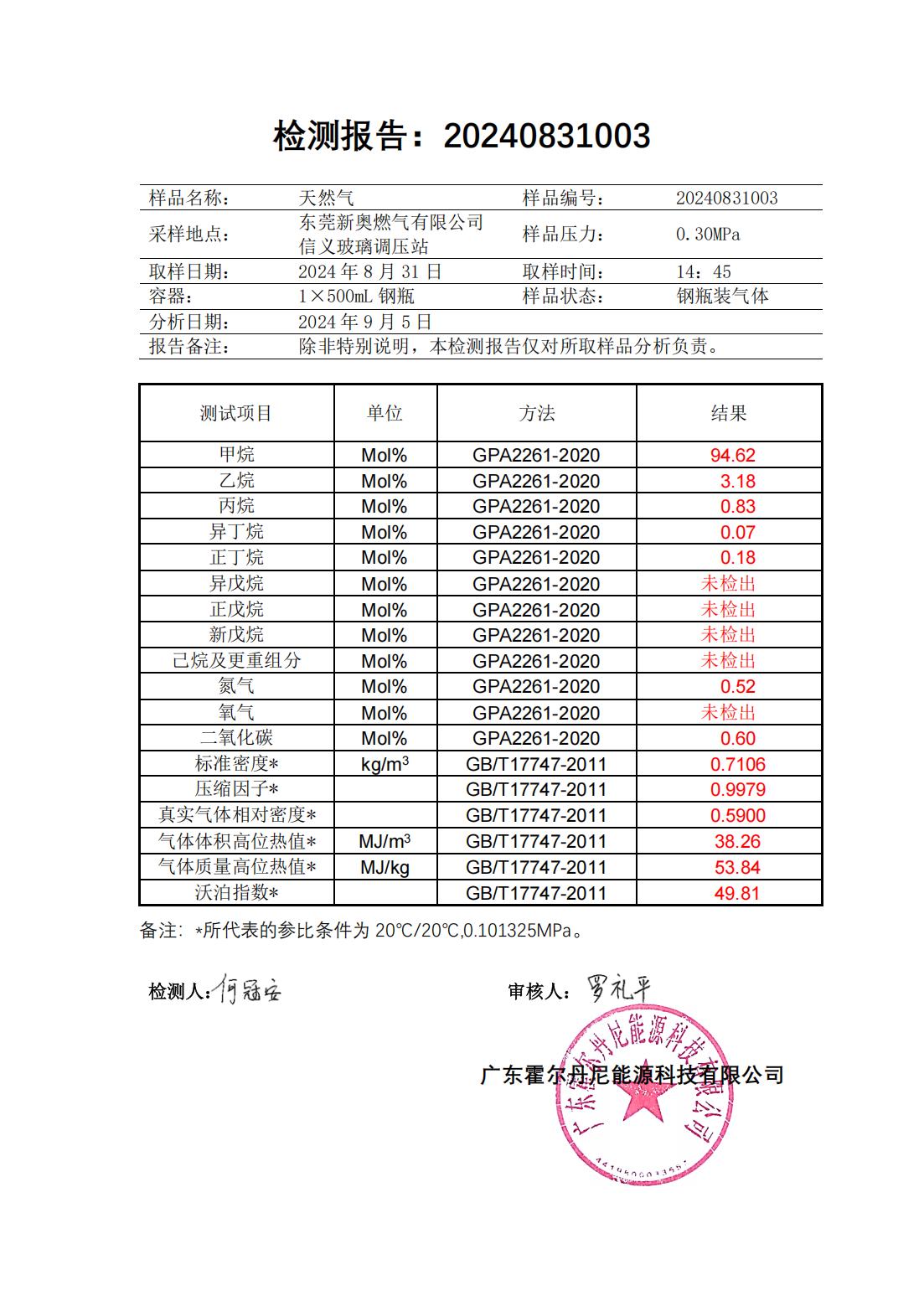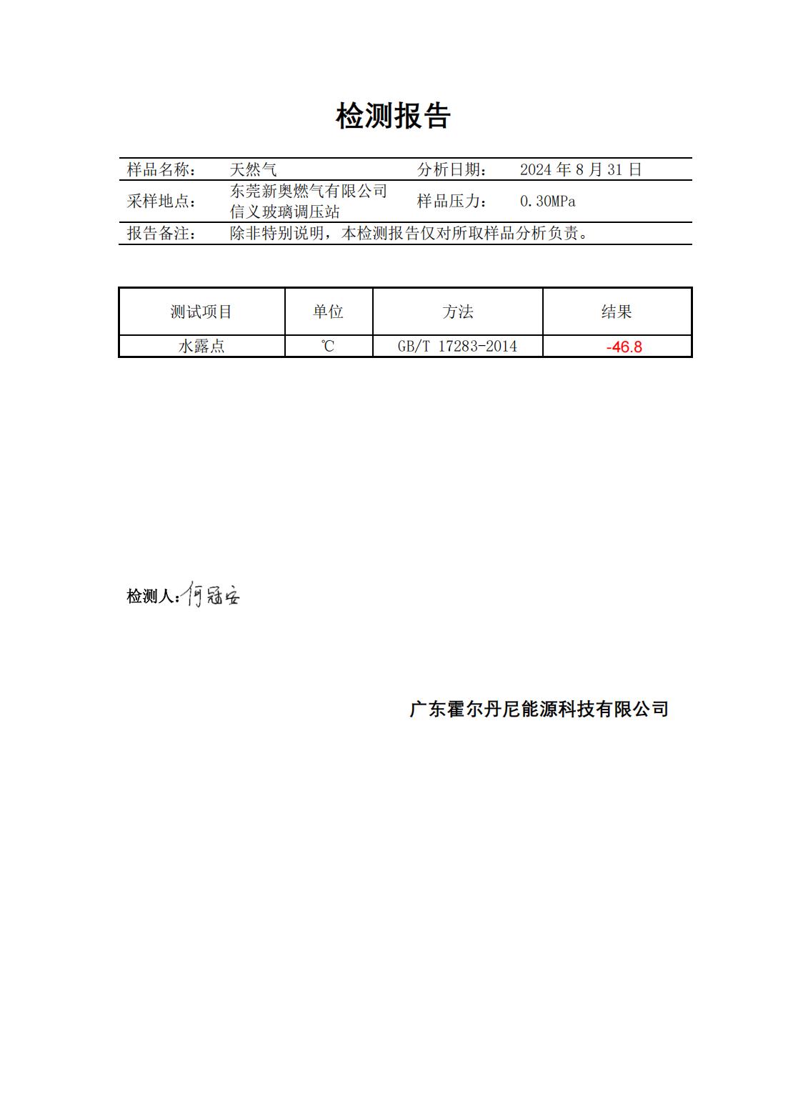 東莞新奧天然氣氣質報告公示