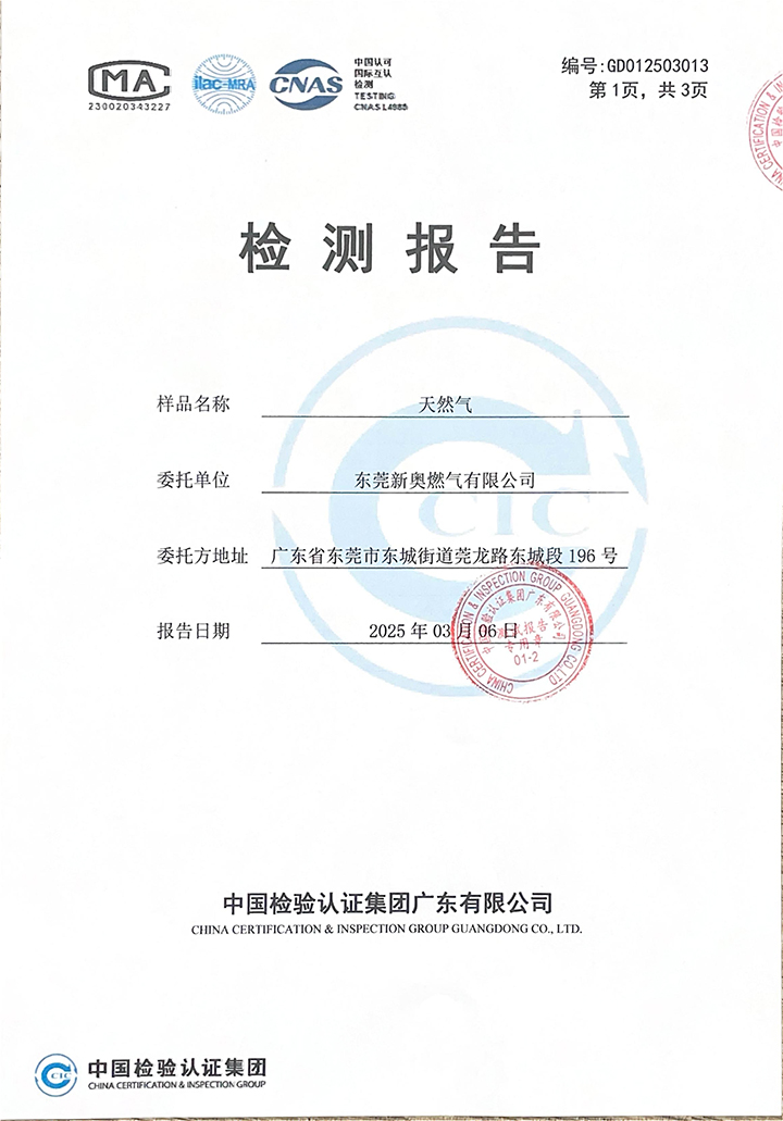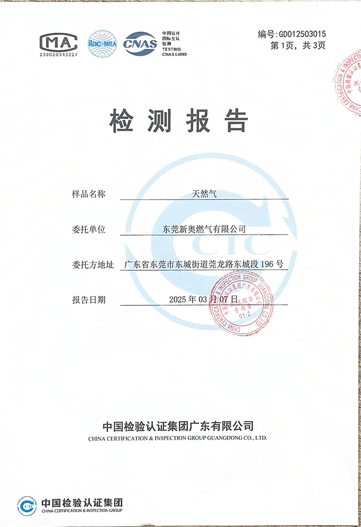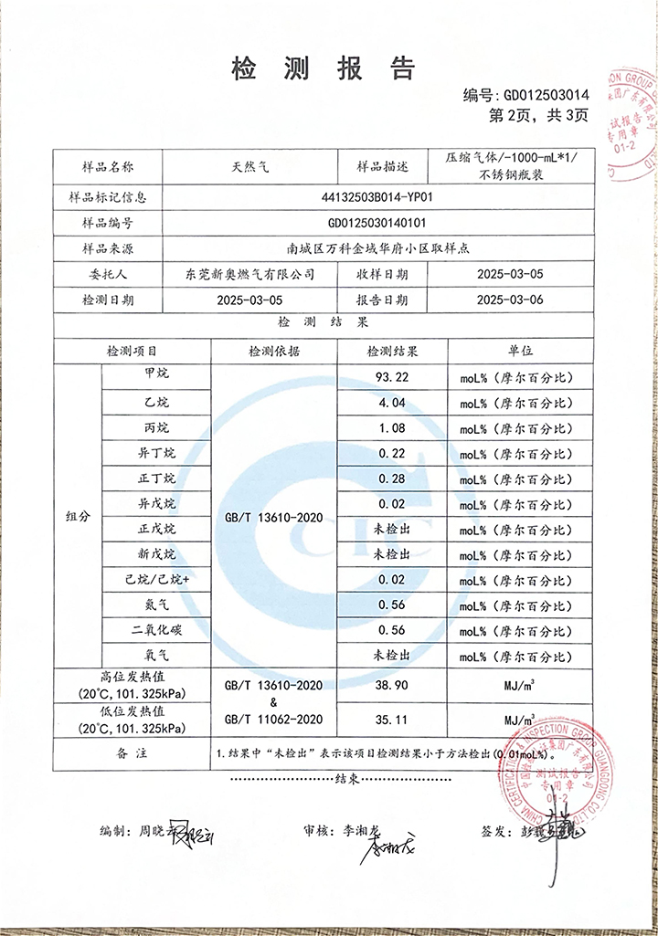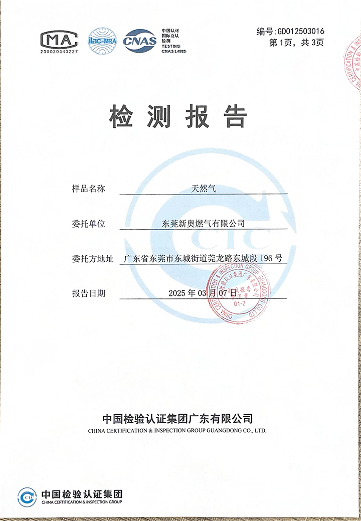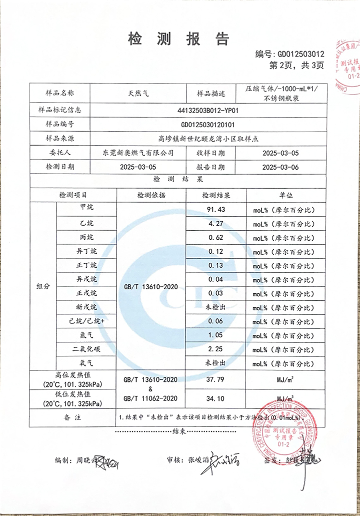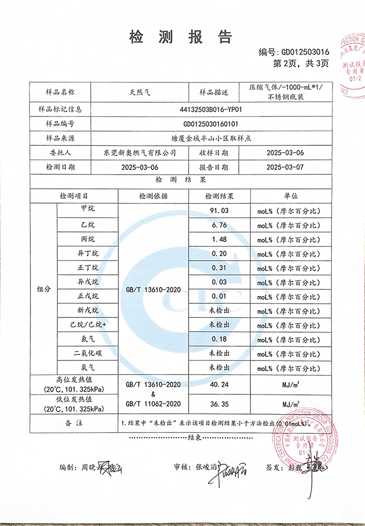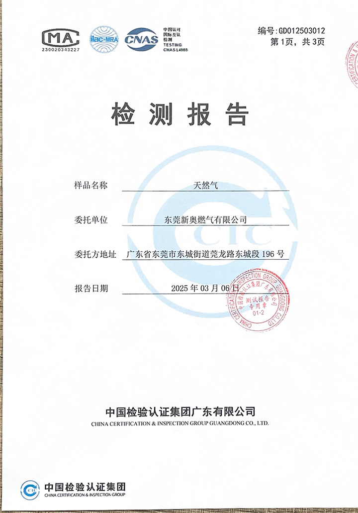 東莞新奧2025年3月天然氣氣質(zhì)報告公示