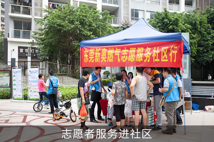 東莞新奧關注對公益慈善事業的投入,參與災區捐贈、捐資助學、幫扶弱勢群體等。2004年至今,累計捐款捐物超過3500萬元。2012年,公司組建 “七色花”志愿服務隊,定期開展燃氣安全服務、環保宣傳、弱勢人群幫扶等社會公益活動,2014年獲得東莞市志愿者拓展總隊授旗,成為總隊旗下的新奧分隊。目前公司注冊志愿者已有800余名,服務時數超過30000小時,公益服務的足跡遍布東莞市多個鎮街。