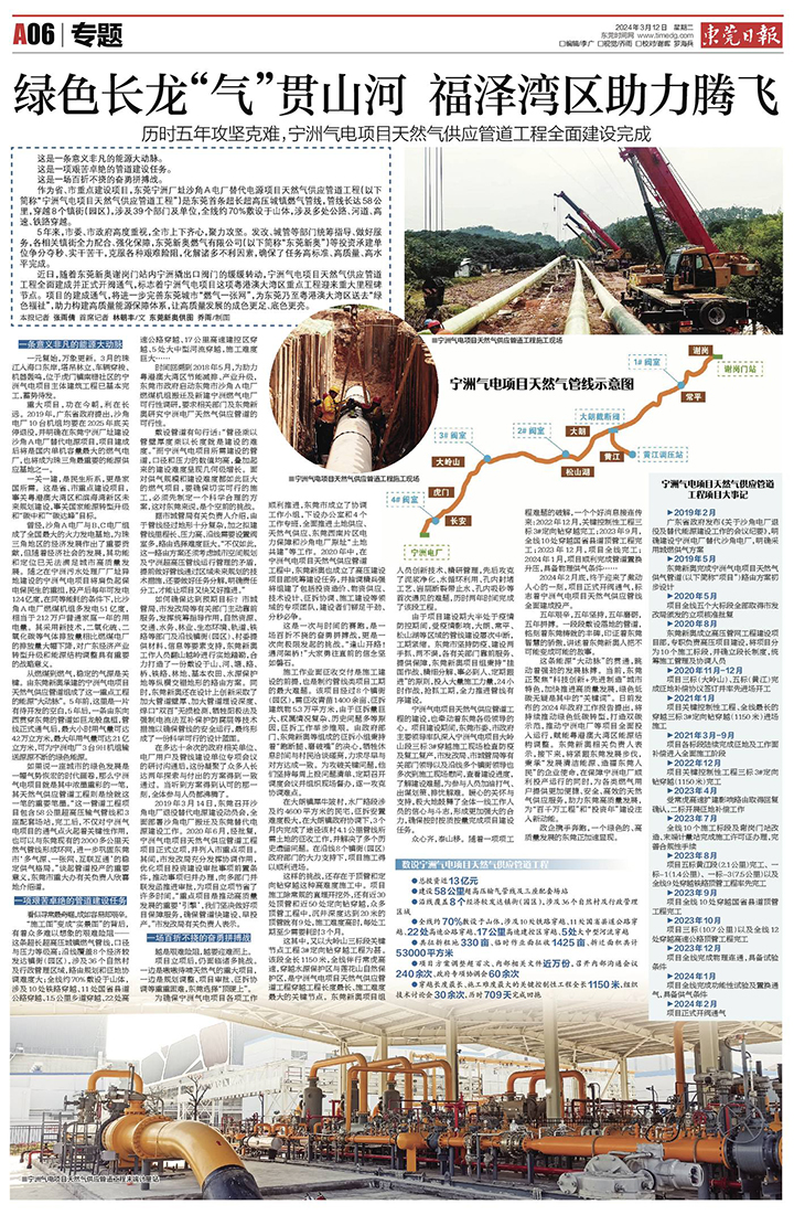 《東莞日報》專題報道 | 歷時五年攻堅克難,寧洲氣電項目天然氣供應管道工程全面建設完成
