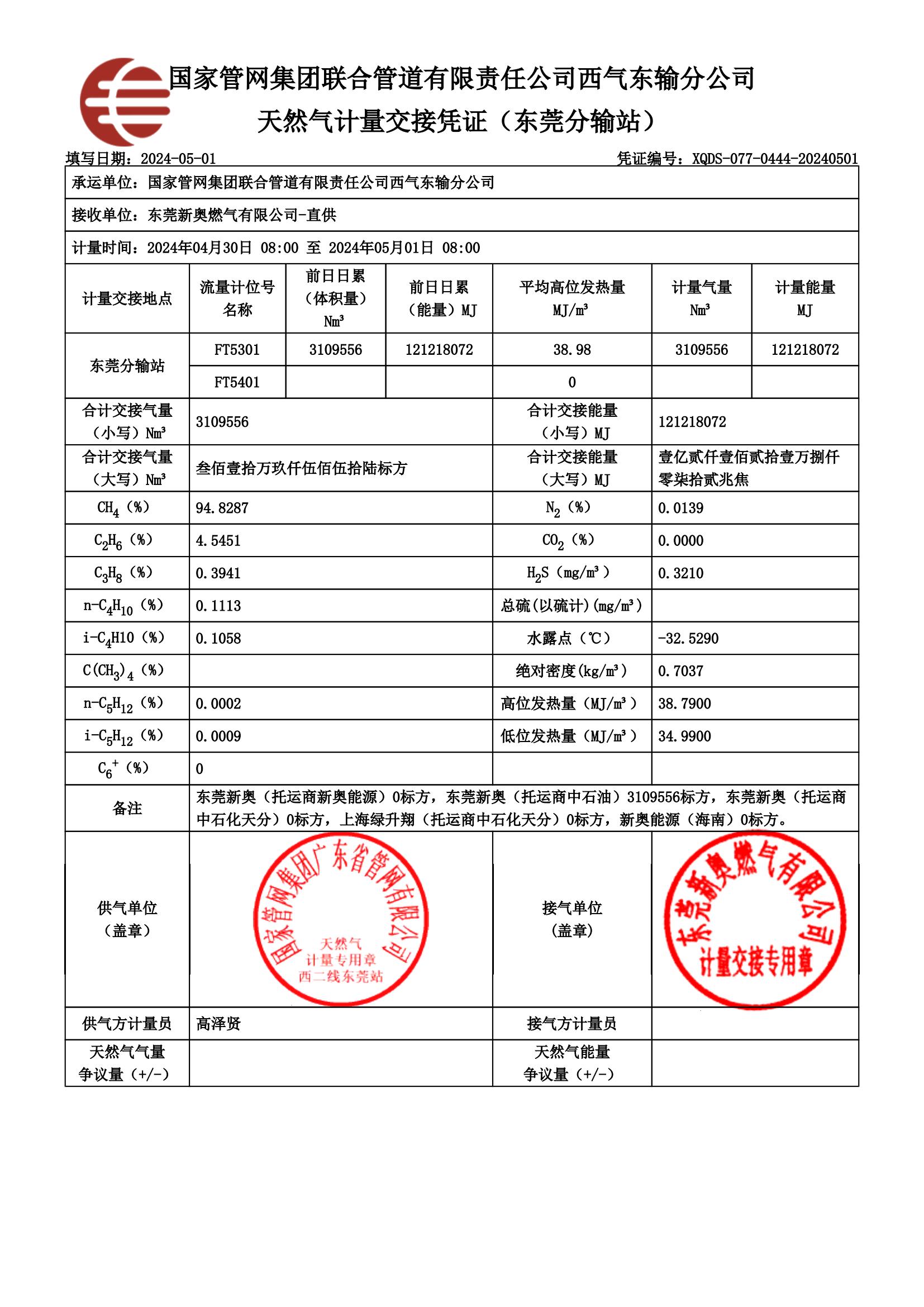東莞新奧燃氣2024年5月份供氣質量檢查報告公示